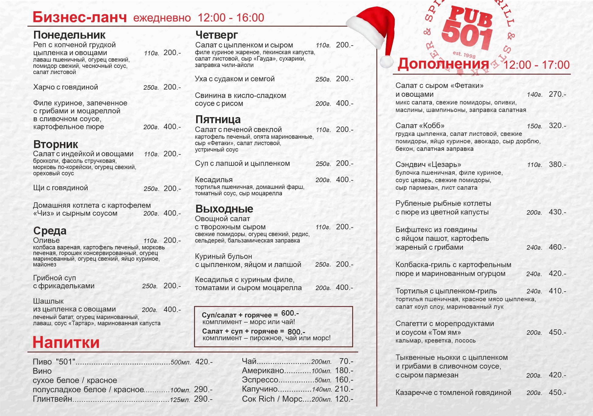 Меню обедов